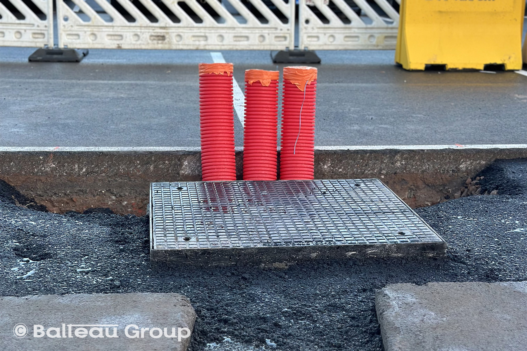 Balisage du site pour la durée des travaux car allées et venues 24h/24 des camions et, principalement, la nuit.